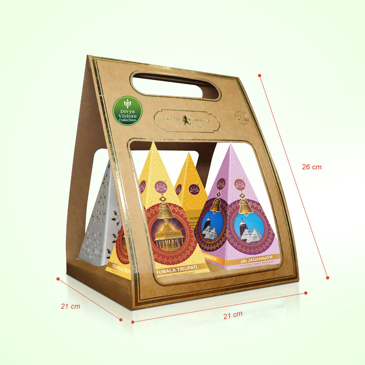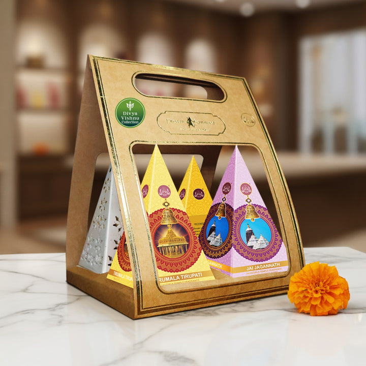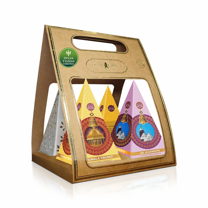 · Tirumala Tirupati Pyramid Luxury Incense Cones – Inspired by the sacred Sri Venkateswara Swamy Temple, a centre of devotion for over 1,000 years, carrying the blessings of prosperity and divine wealth.