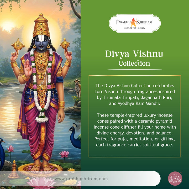 Lord Vishnu, the eternal preserver, is worshipped across India in temples that hold centuries of faith and devotion. The Divya Vishnu Collection draws inspiration from three of the most celebrated Vishnu temples: Sri Venkateswara Swamy in Andhra Pradesh, Jagannath in Puri (Odisha), and Ram Mandir in Ayodhya. Each has shaped the spiritual rhythm of India, carrying prayers of prosperity, balance, and divine grace through generations.