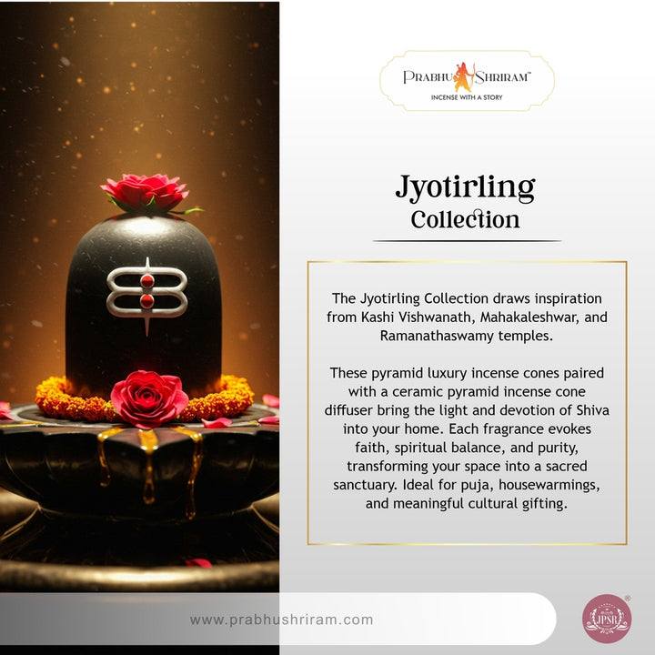 • Shri Kashi Vishwanath Pyramid Luxury Incense Cones – Inspired by one of the oldest Shiva temples, believed to stand for over 3,500 years in Varanasi, this fragrance invokes transformation, inner strength, and spiritual liberation.