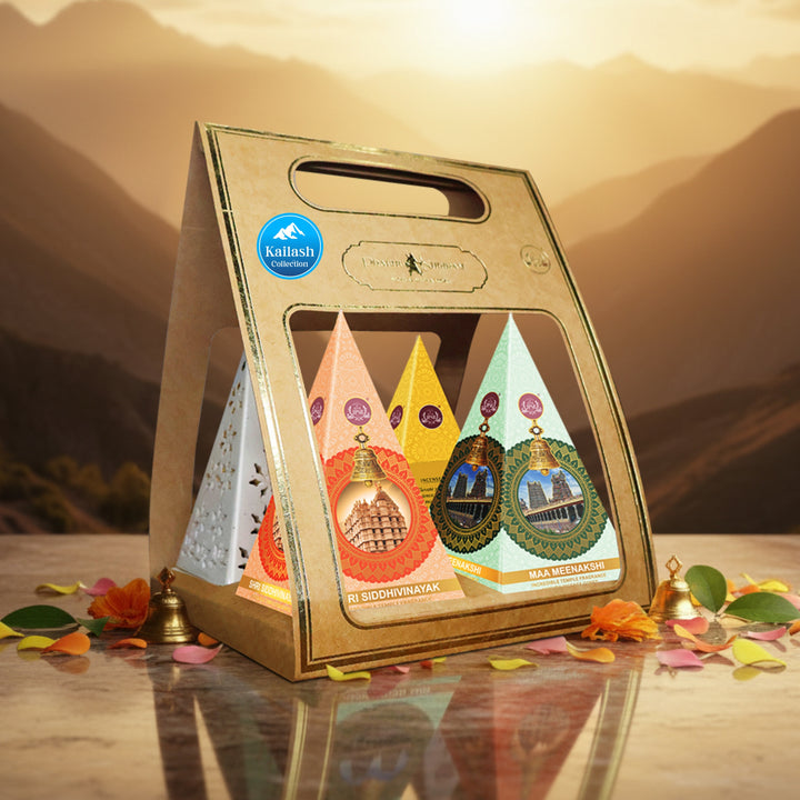 The Kailash Collection is inspired by this very spirit. It combines fragrance, culture, and devotion in three soulful temple-inspired luxury incense experiences and includes an elegant ceramic pyramid diffuser to gently fill your space with fragrance. It makes for a perfect gift, whether you are looking for house-warming puja, festive gifting, or creating a peaceful atmosphere.