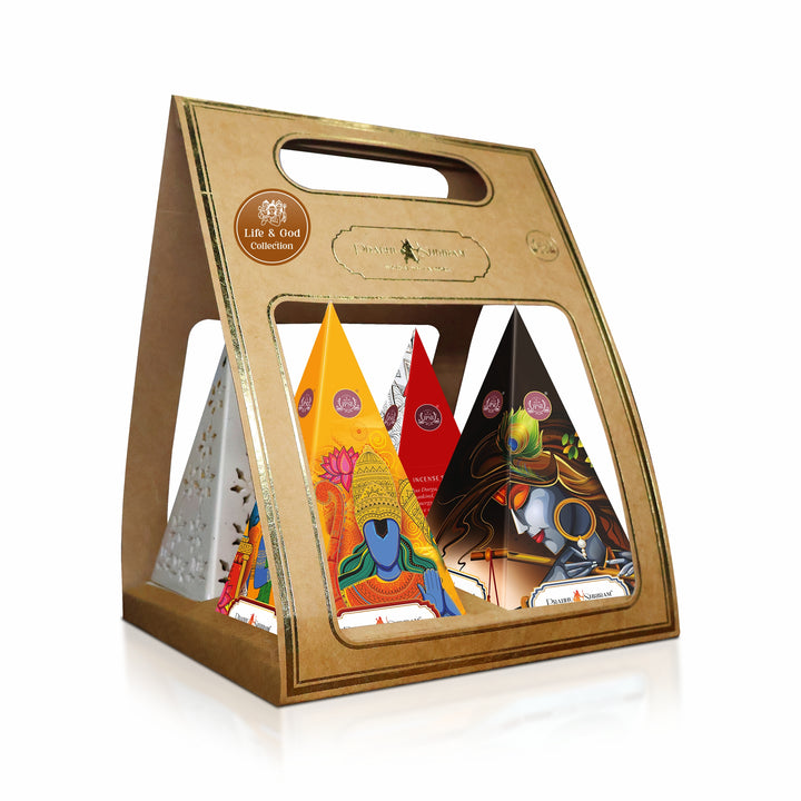 The Life & God Collection is a spiritual journey through love, devotion, and worship. From the first breath of affection to the deepest act of faith, it celebrates the bond between humanity and the divine. Inspired by three eternal emotions, Leela (Love), Bhakti (Devotion), and Upasana (Worship), this luxury incense set transforms fragrance into a medium of spiritual connection.