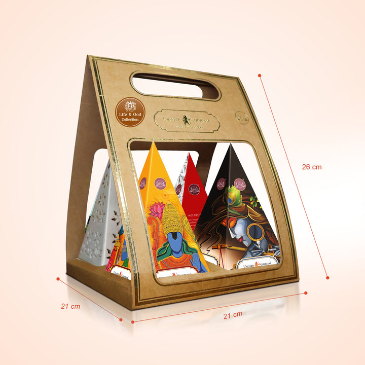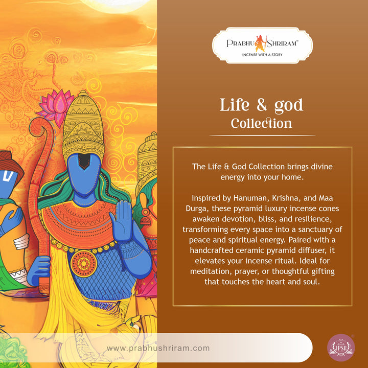 - Bhakti Pyramid Luxury Incense Cones – Drawing inspiration from Lord Hanuman’s deep devotion to Lord Rama, this fragrance kindles the flame of faith and surrender. Each cone is a reminder of the peace that devotion brings to the soul.